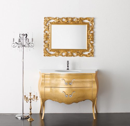 Gyönyörű, elegáns kivitelezés. Ami nagyon tetszik és valamikor nekem is biztosan lesz, az a barokk stílusú tükör. Én ezt a stílust előszobaként eltudnám képzelni, bár ha megfigyeljük a képet, ez itt egy minimalista fürdőszoba berendezés. Mennyire szeretitek az arany, barokk, ívelt bútorokat?