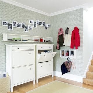 Íme egy vidám, kedves előszoba, ötletes ülőhellyel. Aranyos!